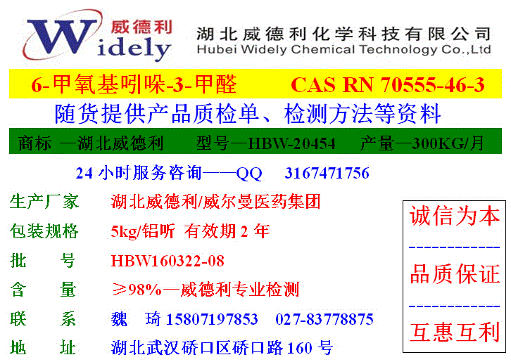 關(guān)注湖北威德利6-甲氧基吲哚-3-甲醛2016年市場動(dòng)態(tài)