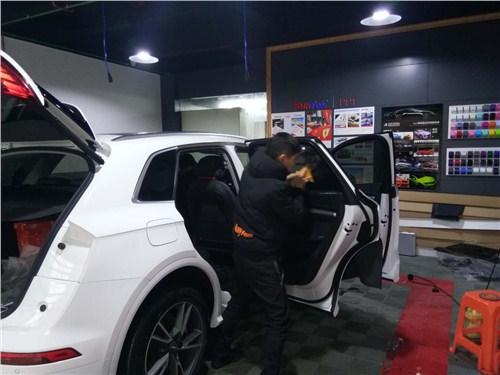 貼膜過程我們需要將車洗干凈,首先我們還給車輛安裝上保護罩,這樣汽車貼膜效果會更好些,要達到無塵汽車貼膜.專業(yè)性貼膜